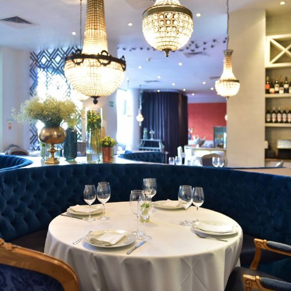 Кафеина разделена на две комнаты: бар-кафетерий и ресторан. Оригинальная, элегантная кухня явно интернациональна, но имеет португальские корни и определенное французское и итальянское влияние.